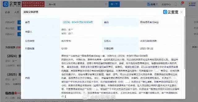 法院判决被告赵某某公开赔礼道歉,并赔偿经济损失5000元、精神损害抚慰金5000元。上述判决生效后,赵某某未履行致歉义务,朱一龙申请强制执行。