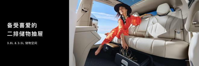 新车还配备2.1平米的星空天幕,配备有一键开启电动遮阳帘。车内也提供了8.2升双向开门冷暖箱,纯电车型后排座椅下方提供储物抽屉。新车后备厢容积837L,纯电车型前备厢52L,并支持敲两下电动开启。