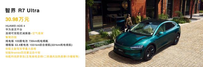 升级华为ADS 4/首发车内外对讲 新款智界R7售24.98万起