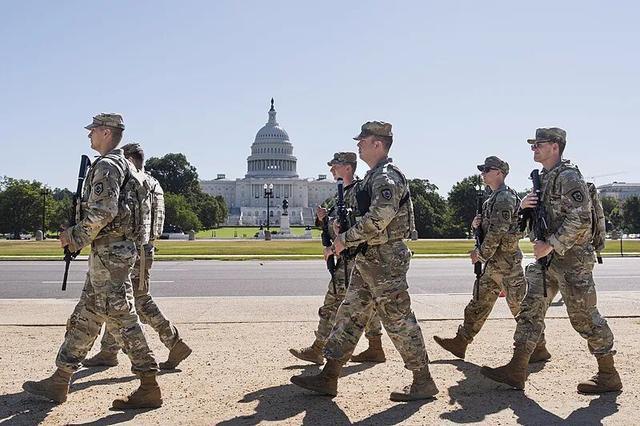 △美国国民警卫队员在首都华盛顿巡逻