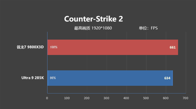 这是锐龙7 9800X3D的测试成绩,661FPS。