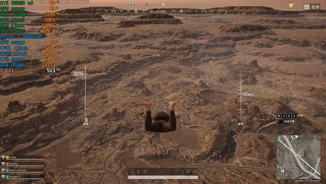 比如在《绝地求生》中的飞行状态下,游戏帧率接近1100FPS,在《无畏契约》中,大部分时候帧率都在800FPS以上,少数场景会接近千帧。