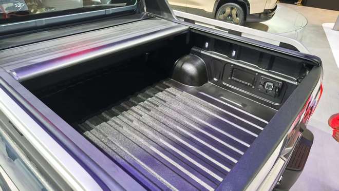 颜色方面,其将拥有专属旷野蓝配色,十分新颖。而混动版和插电版在设计上的差异就集中在前格栅部分,EV版本采用的是封闭式的前脸。在货箱部分,新车采用模块化龙门架和可扩展行李架系统,支持安装自行车架、车顶行李箱等配件,并取消外露绳钩,提升整体流畅度。