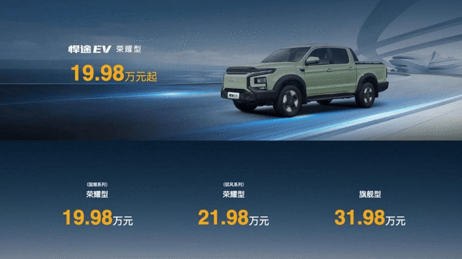 9月2日报道 在成都车展上,江淮皮卡全新悍途(参数丨图片)PHEV与悍途EV正式上市,其中悍途PHEV共推出7款车型,售价区间为15.98-31.98万元。而悍途EV市场指导价为19.98万元-31.98万元。两款新车分别为插电混动车型和纯电车型,旨在满足不同的用户。另外,官方还公布了上市权益,包括:订车礼:限时下订1000元抵3000元;质保礼:电池、电机5年/20万公里,电控8年/20万公里;焕新礼:增换购补贴至高10000元;畅联礼:基础流量终身免费,娱乐流量3年免费。