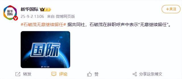 9月2日,据新华国际消息,石破茂在辞职呼声中表示“无意继续留任”。