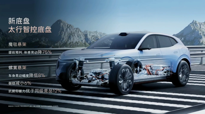 另外新车的底盘也有所升级,魔毯悬架实现提前预判,晃动降低75%,优化螺旋弹簧,降低晃动和减少侧倾。