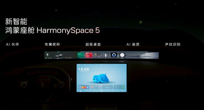 首次搭载华为鸿蒙5系统,拥有超级桌面、声纹识别等功能,能够实现光随影动的效果。座舱通过35.4英寸的全景远端屏、15.6英寸的悬浮式中控屏、双6.7英寸的高清后视屏,营造出四屏环视的氛围感。内饰新增岩棕色,灵感源自于独库公路的岩石。