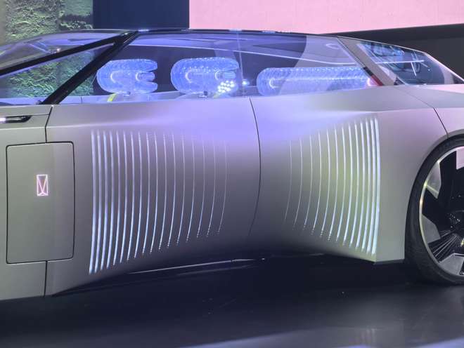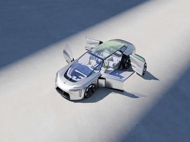 概念车采用的对开的开门方式,通过车体的设计可以看到车门开启的角度非常大,而且从官图的视角来看,进一步看出概念车给到的通透空间。
