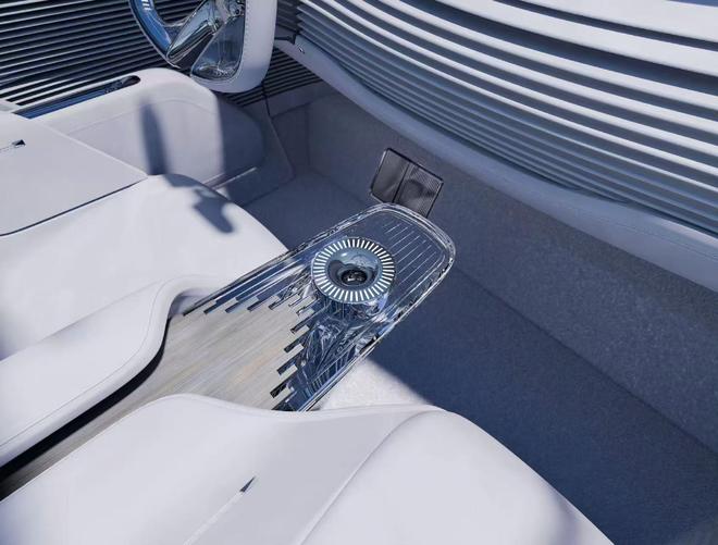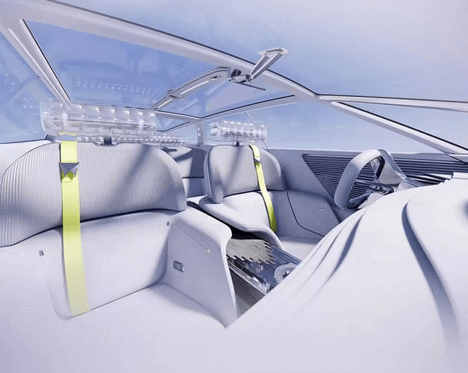 毕竟还是纯粹的概念车,所以在座舱内展示的还是它奢华的一面,比如薰衣草式的玻璃色温、水晶头枕、充气结构3D立体编织的安全带还有座舱内皮质的运用。