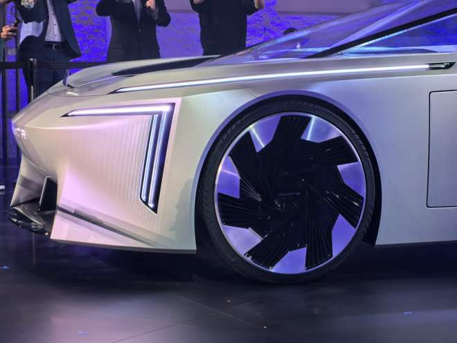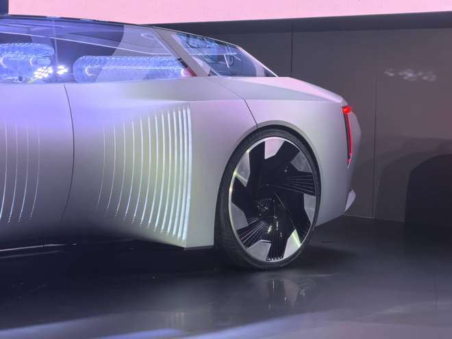 当然,修长的车身也确实做出了很多不一样的设计,比如大尺寸的轮毂,以及非常通透的悬浮车顶,也意味着车内乘员能够有更敞亮的出行体验。总体而言,这款车给人的第一眼印象确实是一种未来的呈现。