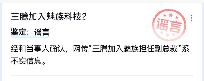 对此,抖音辟谣卡经与当事人确认,证实“王腾加入魅族担任副总裁”为不实信息。