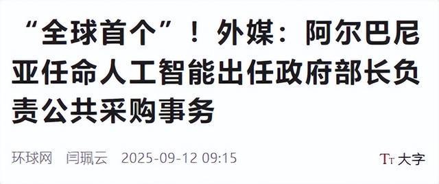 阿尔巴尼亚政府部长职位首次由AI机器人担任全球首例