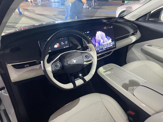 内饰设计采用环抱式风格,简洁但很精致。仪表板采用Microcloud纤维绒高级皮革,实现出高级细腻的绒面效果。功能上,新车标配了15.6寸中控屏和8.8寸仪表屏,信息布局清晰易读,包括胎压、多媒体、行车电脑等信息都可以在仪表盘上查看。而方向盘采用双色设计,很显高级感,皮质的手感和握感也都很到位。