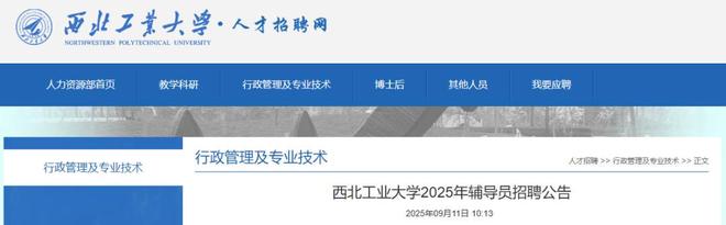 西北工业大学2025年辅导员招聘公告