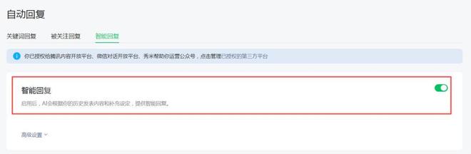 此前,微信派11日表示,微信上线公众号“智能回复”功能。