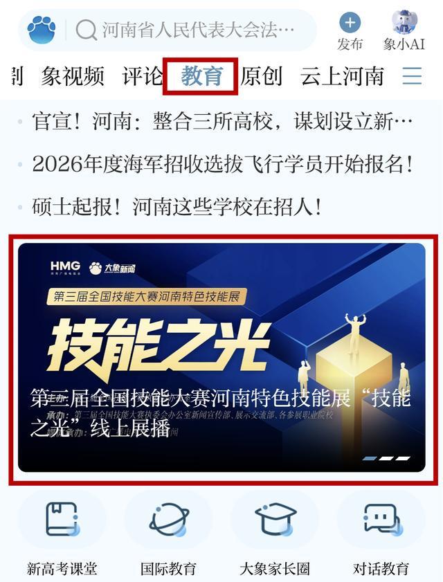 线上也能参与精彩!大象新闻客户端特设“河南特色技能展”线上展播专区,35所河南职业院校特色专业和就业情况集中展示,等你来pick!