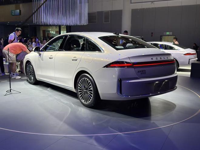 车尾部分,3D悬浮贯穿尾灯造型独特,内部LED灯带错落有致,点亮后视觉效果出众。“ROEWE” 呼吸光语LOGO 灯与前脸相呼应,进一步提升了整车的辨识度与高级感。
