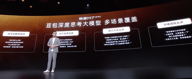 在智能化配置方面,荣威 M7 DMH同样表现出色。作为豆包深度思考大模型全球首发“上车”车型,它搭载的AI大模型具备语义深层理解、跨音区记忆及无缝跨域切换等核心能力,实现了精准自然的语音响应和多场景任务无缝融合。