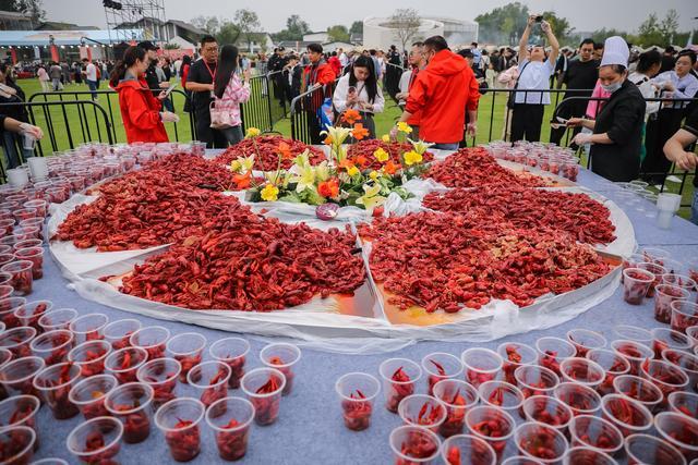 2米龙虾宴“锅气”腾腾;百家美食摊位,煎炒烹炸声此起彼伏。