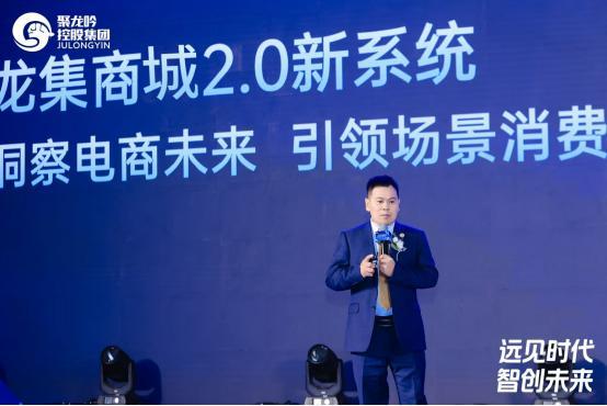 聚龙吟控股集团副总裁唐禄阳,围绕“龙集商城2.0新系统”的全新功能,消费场景进行了商城新版本的解读。