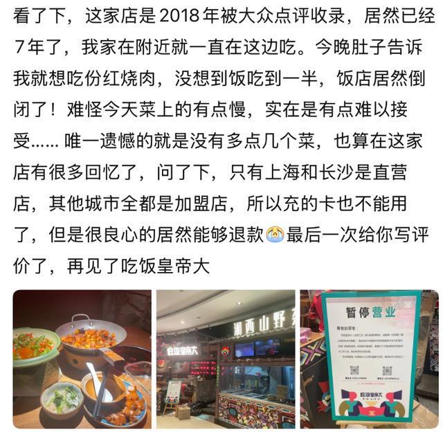 9月24日,一位上海网友称,知名餐饮品牌“吃饭皇帝大”上海所有门店全部闭店。