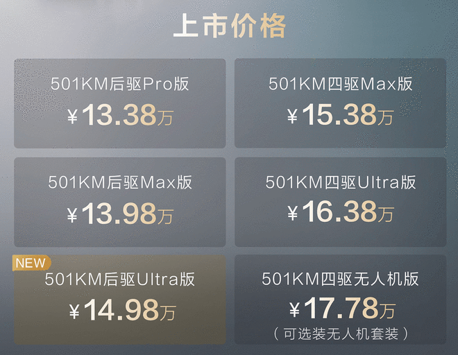 方程豹钛3新增后驱Ultra版,售价14.98万元,续航里程达501km