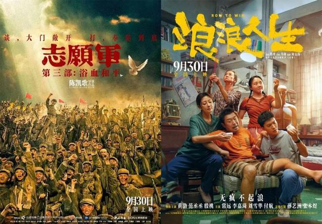 9月30日,由陈凯歌执导的战争巨制《志愿军:浴血和平》与黄渤、范丞丞主演的合家欢喜剧电影《浪浪人生》率先拉开国庆档大银幕!《志愿军:浴血和平》聚焦抗美援朝战争“边打边谈”阶段,呈现前线激战与外交较量。《浪浪人生》则讲述黄渤、范丞丞、殷桃、李嘉琦、刘雪华演绎的一家五口笑对逆境、勇敢对抗生活风浪的温情故事。
