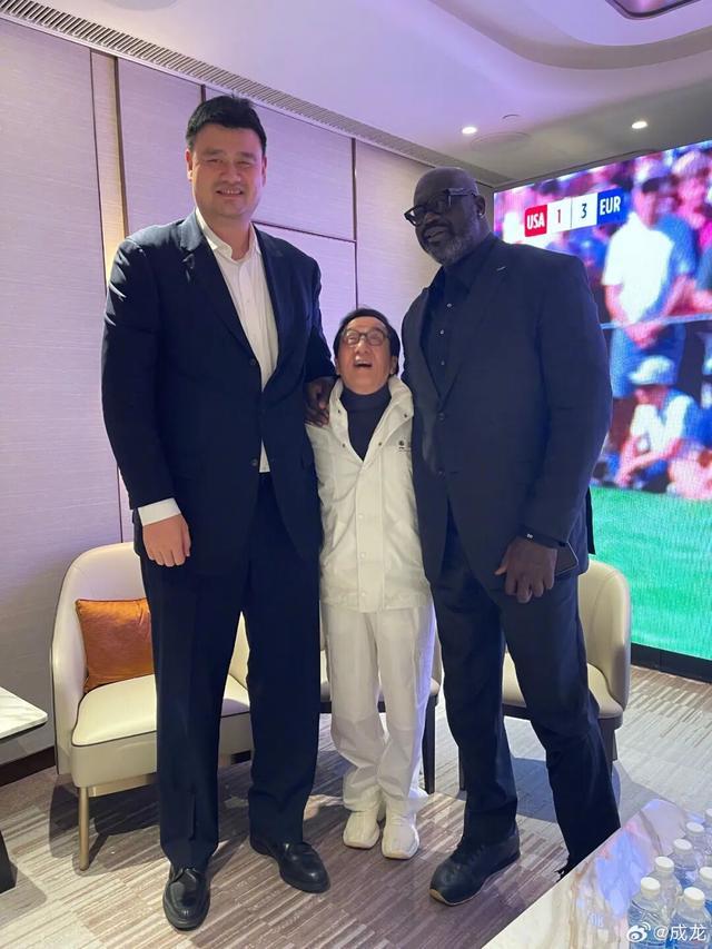 成龙被夹在中间,只能仰望姚明和奥尼尔。