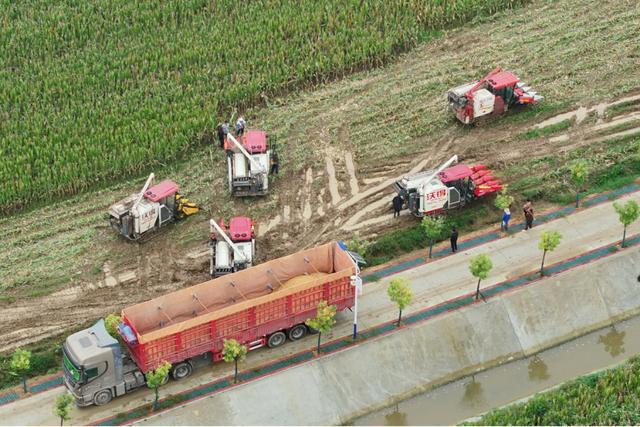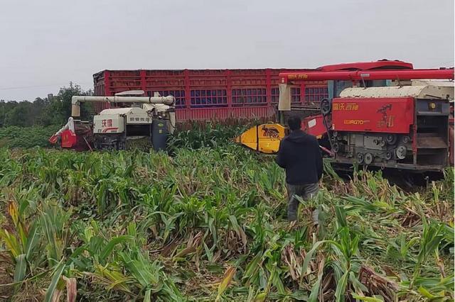 在宛城区红泥湾镇,当地迅速启动应急响应机制,采取“机械+人工”的形式,打出“跨区联动、协同推进”组合拳,依托50余台履带式联合收割机进行机械化作业,组织13支“助农抢收服务队”,帮助群众解决农机调配、道路通行、粮食烘干、销售等问题,确保秋粮颗粒归仓。