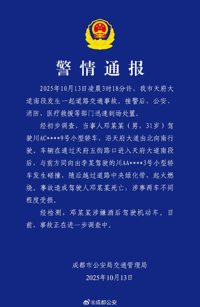 成都警方通报,酒驾导致驾驶员身亡的悲剧事件