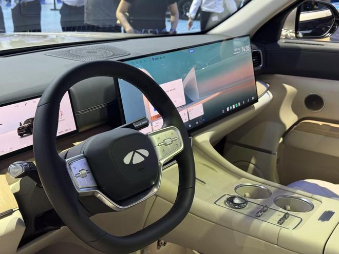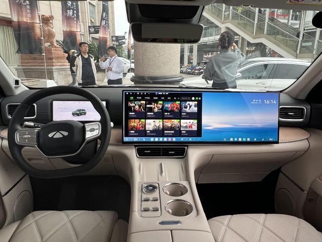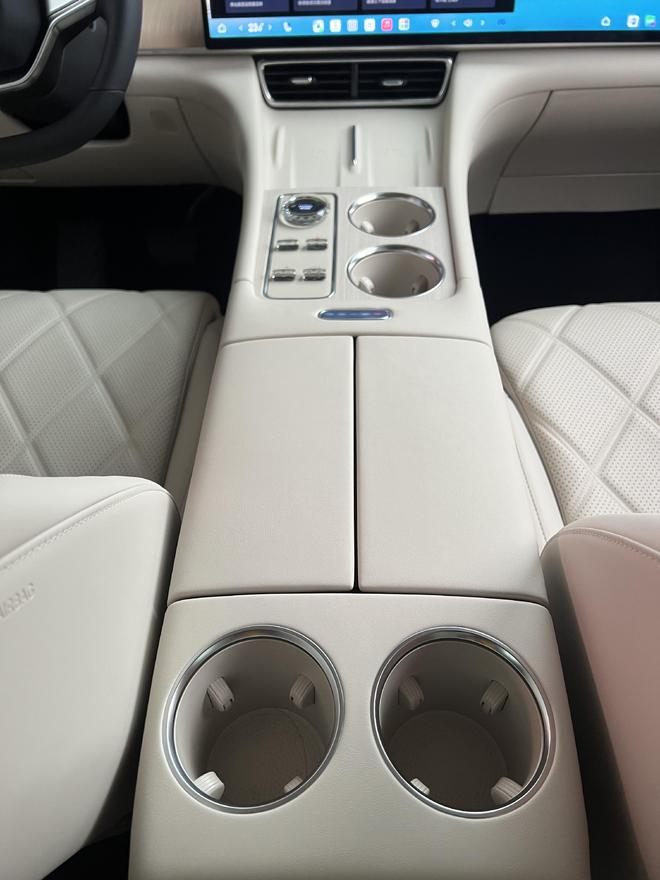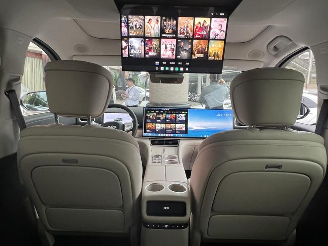 新车的车内前后排均配备娱乐大屏,前排为30英寸的一体式贯穿屏设计,6K的分辨率,可以让视觉感受再上一层,搭载高通8255芯片与Deepseek AI模型,支持6音区语音交互,导航信息可无缝流转至AR-HUD,后排为17.3英寸的超大吸顶屏。