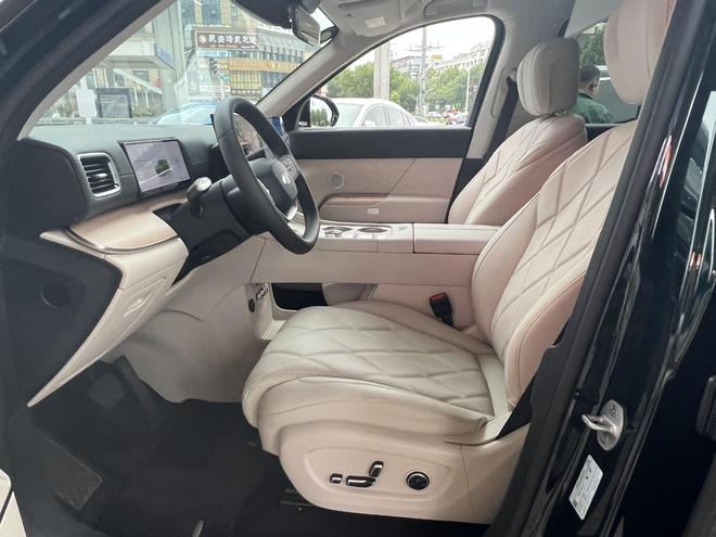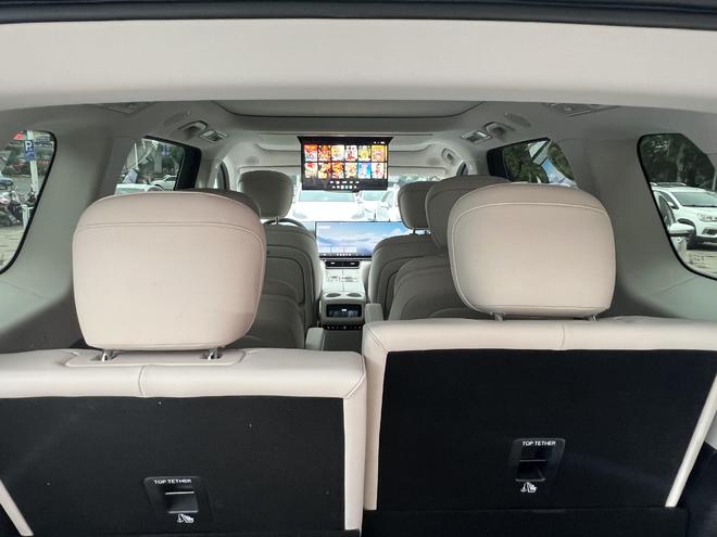 在座舱内,新车采用六座布局,有大面积皮质包裹,在前排和第二排座椅配备加热、通风、按摩功能,主副驾都是VIP的角色,而二排右侧则是零重力座椅,再配备前排的桌板以及吸顶屏,舒享的感觉拉满。而三排座椅也是支持电动调节及放倒功能的,还有三档加热功能,配合车顶天窗以及三排的侧窗,在这里也能有通透的感觉。