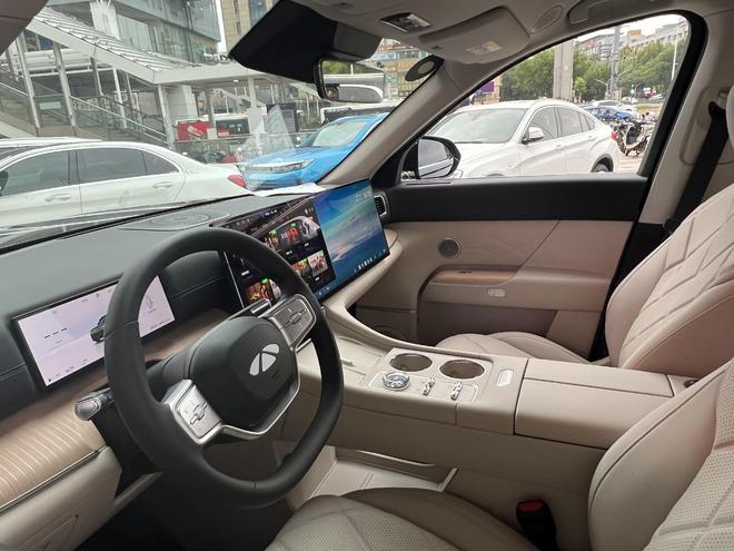 底盘搭载 “磁悬浮底盘”,采用前双叉臂+后五连杆独立悬架,配可调阻尼减振器,高配叠加空气悬架和CDC,操控更舒适。智驾方面,高配车型搭载激光雷达和猎鹰智驾系统,新车还可实现NOP城市驾驶辅助和记忆泊车功能。