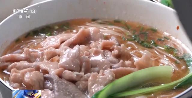 顺着袅袅锅气,三鲜粉新鲜出炉。三样荤菜鲜甜醇美,搭配少许葱花、青菜,闻起来香气扑鼻,尝上一口,米粉细软如丝,鲜香顺滑。