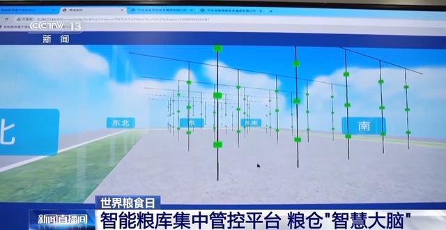 除此之外,在粮仓里头也隐藏了许多“小哨兵”。比如,每个仓库都设有150~200个温度传感器,工作人员在智慧大屏上,就能看到实时显示的各粮仓的温度、湿度等信息。