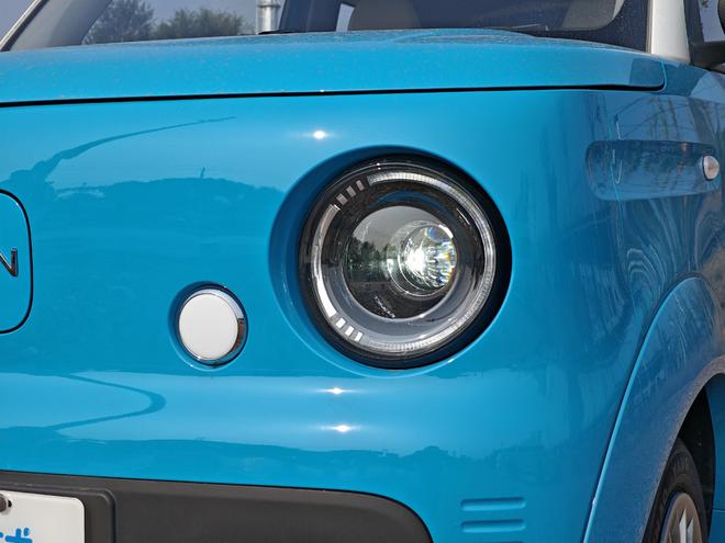 新车采用封闭式前脸,前脸处的窄条幅前格栅,搭配圆形大灯,萌感十足,复古造型的保险杠,采用银色配色,个性十足。充电口巧妙藏在两个大灯中间,充电盖板上印有“LIVAN”的品牌标识。