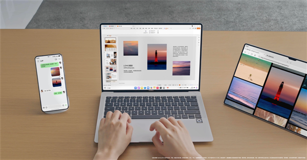 此外,其跨设备互联功能支持应用接续与键鼠共享,手机上未完成的工作可无缝切换至电脑,外出洽谈时无需携带多个设备。