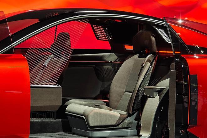 驾驶舱设计完全是极简风,矩形半幅式方向盘可收入仪表台,中央12.3英寸水晶旋钮是车内唯一物理控制界面,其余功能全部隐藏于木纹饰板之下。丰田加州设计团队甚至考虑提供“中央驾驶位”版本,以满足中东及欧洲客户口味。