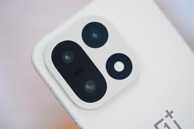 这次一加 15的相机Deco采用和一加 13T相似的排列形式,居左排列的圆角矩形,三颗摄像头与闪光灯珠组合在一起。
