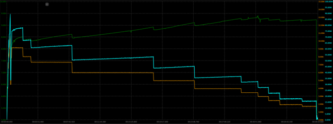 之后进入一个较长的稳定期,一致持续到18分钟,充电功率维持在约50W。