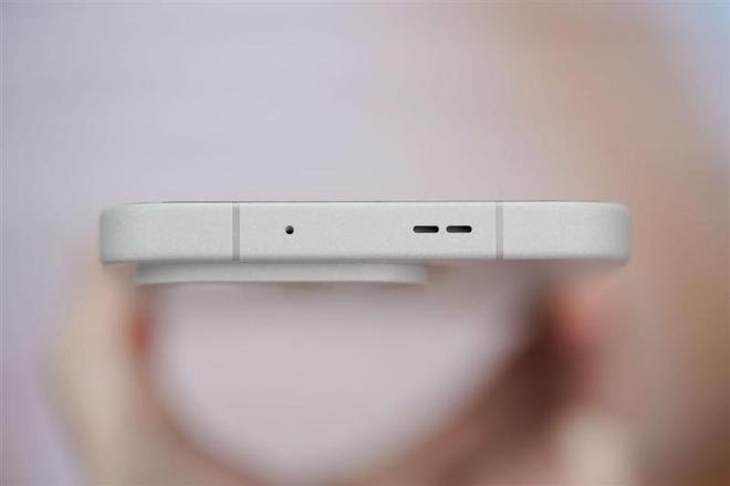 中框部分采用金属,有一种较为粗糙的细砂的质感,但摸起来并不难受,反而配合摩擦力能把手机稳稳的握在手里。