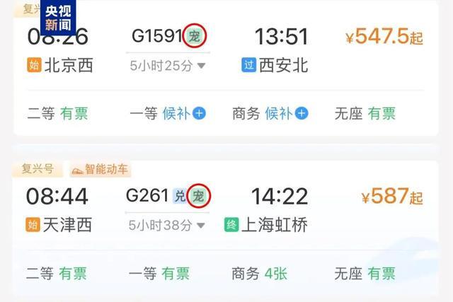 购票页面在相应车次旁标注“宠”字。旅客本人购票成功后,页面会自动显示“宠物托运”入口;