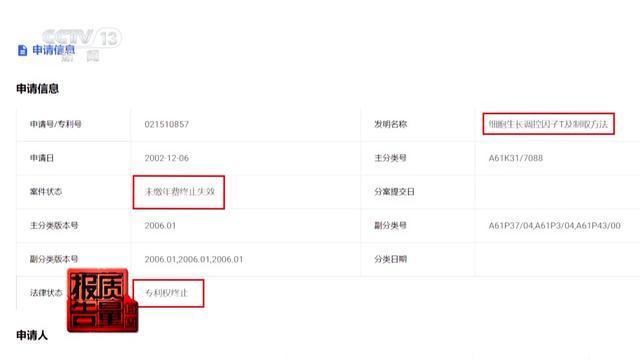 然而,记者通过国家知识产权局官网查询发现,以“NCGCF”即“细胞生长调控因子技术”为关键词,检索到的专利均因未缴年费或在早期申请时被驳回而全部处于“专利权终止”的状态。这意味着这些专利早已进入公共领域,所谓“买断专利”的说法并无依据。