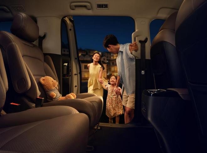 空间表现出色,内部有效车长达3331mm,肩部横向宽体设计1500mm,第三排空间利用率高达88%,二排过道宽达230mm,第三排地板至顶棚超1.2m,让进出更自由;第三排座椅,座椅坐垫尺寸1230mm*490mm,靠背可调12度。第三排座椅还采用魔术翻折设计,通过全放倒并向前翻折,可带来最大容积1202L的百变后备厢。