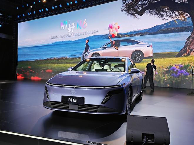 车身侧面,简约流畅的线条勾勒出动感姿态,溜背式造型与隐藏式门把手结合,优化了空气动力学性能。尺寸方面,N6长宽高分别为4831/1885/1491毫米,轴距为2815毫米,定位中型轿车。