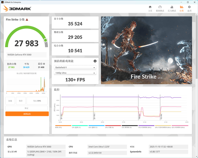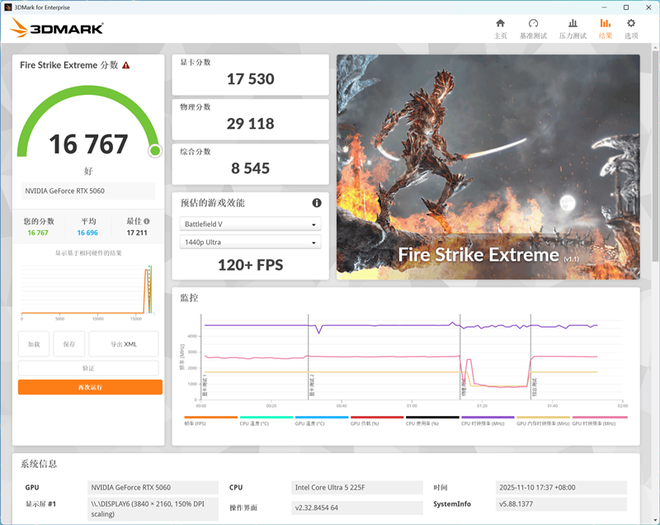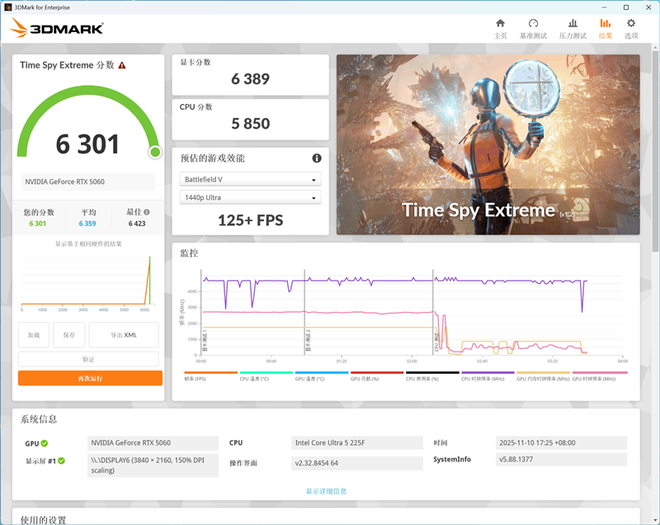在3Dmark Time Spy测试中,华硕天选6X台式机搭载的NVIDIA GeForce RTX 5060独立显卡得分分别为13562和6389。