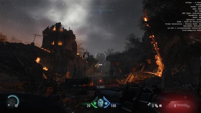 在《毁灭战士:黑暗时代》游戏中,我们使用1080P分辨率和超级噩梦预设画质,并开启DLSS 4,对华硕天选6X台式机进行测试,可以看到游戏帧率为255。