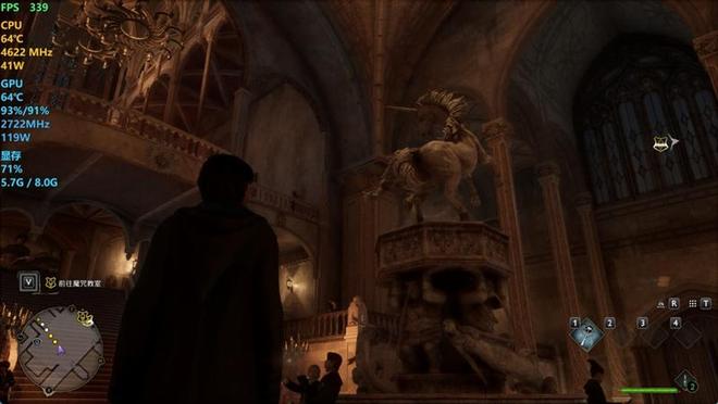 在《霍格沃兹之遗》游戏中,我们使用1080P分辨率和超高画质,并开启DLSS 4,对华硕天选6X台式机进行测试,帧率为339。