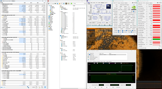 之后我们对华硕天选6X台式机进行双烤测试,同时对CPU和GPU进行十分钟烤机,可以看到CPU功率释放保持在65W,显卡功率释放保持在145W,整机功率约为210W,CPU温度约79度,GPU温度约81度,和单烤时性能没有区别,功率释放十分稳定。