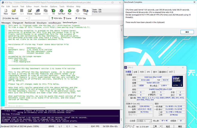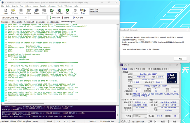 在POV-Ray测试中,单核成绩为864.16PPS,多核成绩为13555.20PPS。